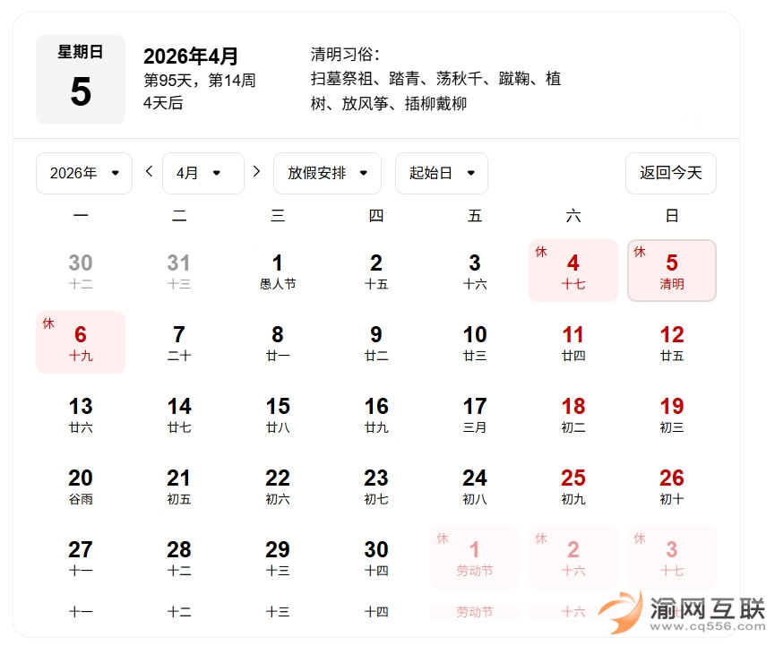 根據(jù)官方通知,2026 年清明節(jié)放假時間為: