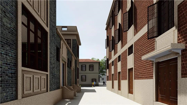 華發(fā)股份華中區(qū)域相關(guān)負(fù)責(zé)人介紹,賀衡夫怡廬主樓平移工程經(jīng)過多輪專家審批、綜合多維度考量,最終形成“兩步走”的方案。此次平移為第一步,在對樓體進(jìn)行全面加固后,將先沿建筑軸心向中山大道方向平移約10米,在原址上開挖一層約5米的地下室作為車庫,主要為緩解歷史風(fēng)貌區(qū)內(nèi)停車難問題。而半年后的第二次平移工程,還會再將主樓向勝利街方向移動約30米,以實現(xiàn)對建筑的整體搬遷。賀衡夫怡廬主樓平移后街區(qū)主入口效果圖