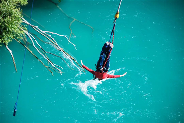 何玉冰在南太平洋海岸體驗(yàn)蹦極