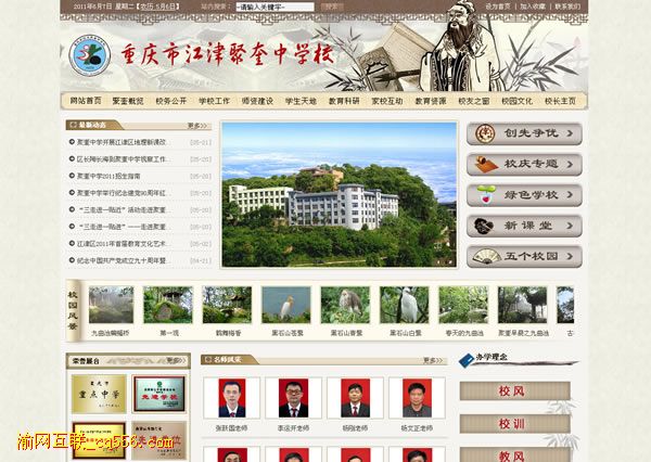 市江津聚奎中學(xué)校是市重點(diǎn)中學(xué),位于江津區(qū)白沙鎮(zhèn)郊的市級(jí)風(fēng)景名勝區(qū)——黑石山上,占地300多畝,總建筑面積63500平方米,常年有學(xué)生4500多人。是國(guó)家級(jí)“綠色學(xué)?!?,市級(jí)“文明單位”、“市容整潔單位”、“文明禮儀示范學(xué)?!?、“園林式單位”、“綠色學(xué)?!?、“安全文明校園”、“中小學(xué)信息技術(shù)教育示范學(xué)?!?、“衛(wèi)生示范食堂”、“五四紅旗團(tuán)委”。學(xué)校黨總支多次獲得江津區(qū)“先進(jìn)基層黨組織”的稱號(hào)。