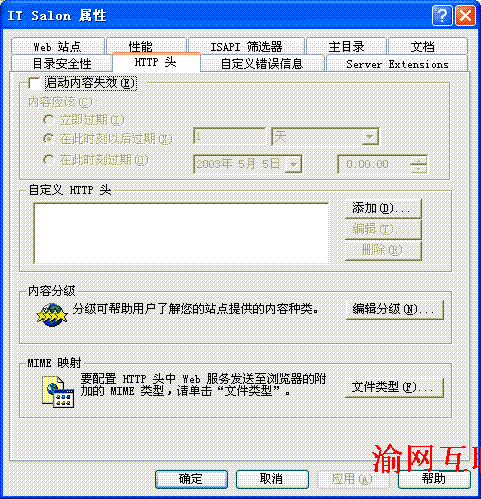 2.在IIS平臺創(chuàng)建一個新的MIME類型 先選擇WAP站點的屬性,再加入MIME類型,然后選擇HTTP Headers標(biāo)簽。