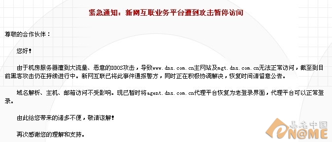 目前為止,各網(wǎng)站已經(jīng)基本恢復(fù),但仍有小范圍攻擊仍在繼續(xù),有關(guān)人士稱,不僅是新網(wǎng)、萬(wàn)網(wǎng)、新互遭到攻擊,中國(guó)頻道也遭到了攻擊,但這一消息善未得到證實(shí),但不管是對(duì)哪家域名注冊(cè)商的服務(wù)器進(jìn)行攻擊,損害到的是所有廣大域名使用者的利益。